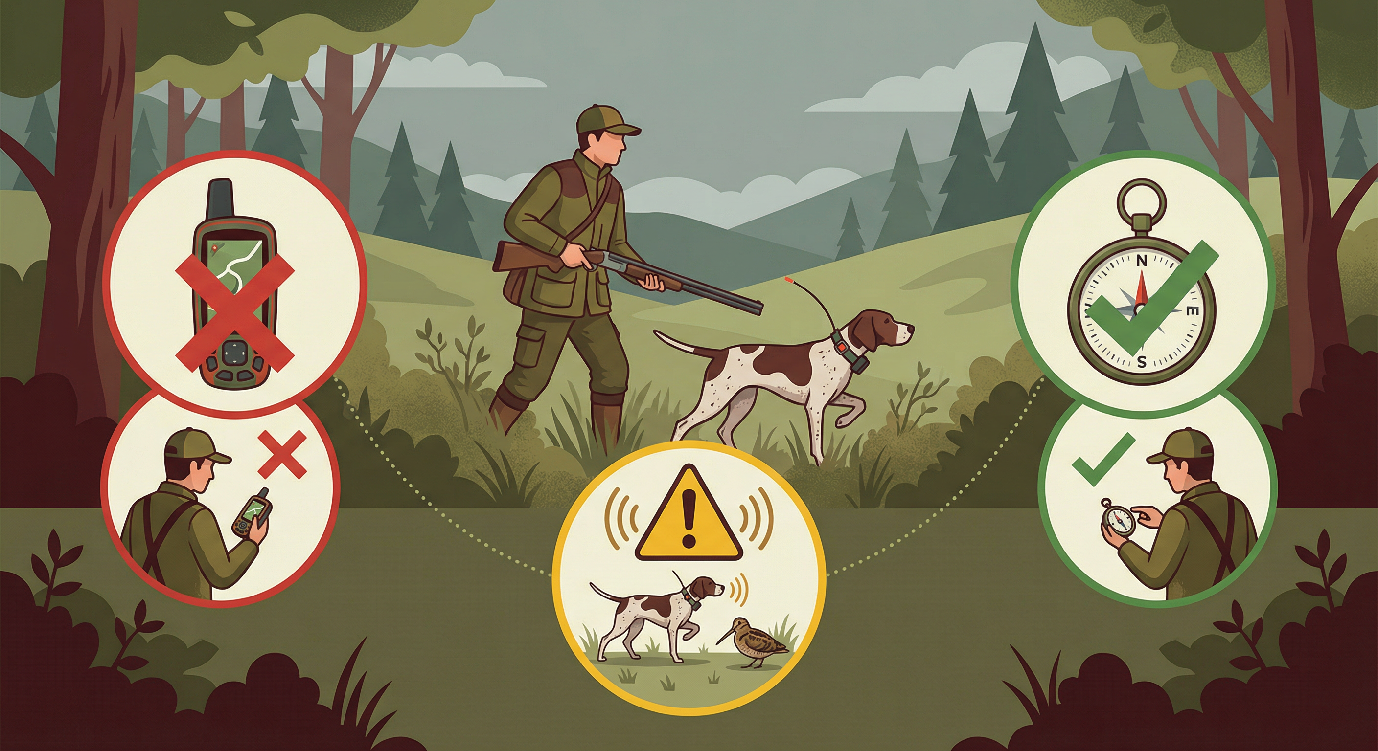 Le principe fondamental stipule que les fonctions GPS (cartographie et boussole) ne peuvent être utilisées qu’après l’action de chasse , dans le seul mais de retrouver un chien ayant échappé à la surveillance de son maître. Pendant la chasse active , le chasseur doit avoir son fusil cassé et déchargé s’il utilise la fonction GPS pour localiser son chien.