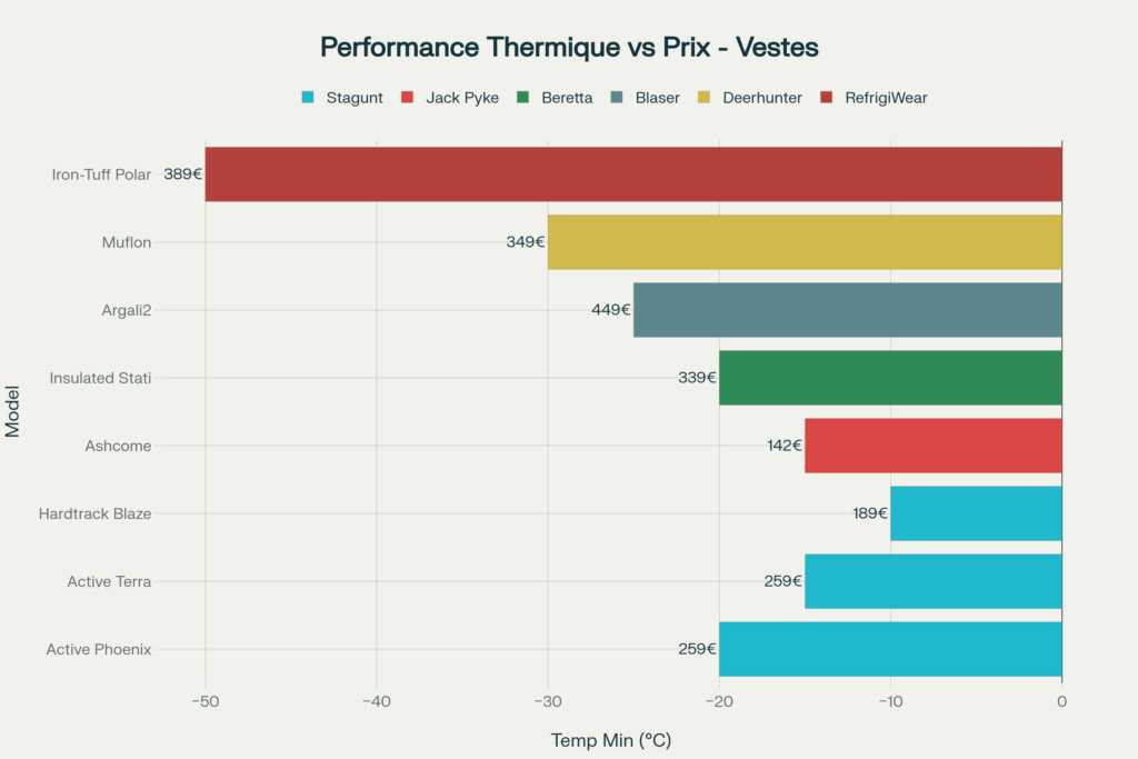 La respirabilité devient cruciale lors d’activités physiques intenses comme la traque. Un indice RET inférieur à 13 garantit un confort acceptable, sous 6 pour une performance optimale. Le poids de la veste impacte directement le confort lors des déplacements : les modèles modernes offrent d’excellentes performances thermiques pour moins de 1,5 kg .