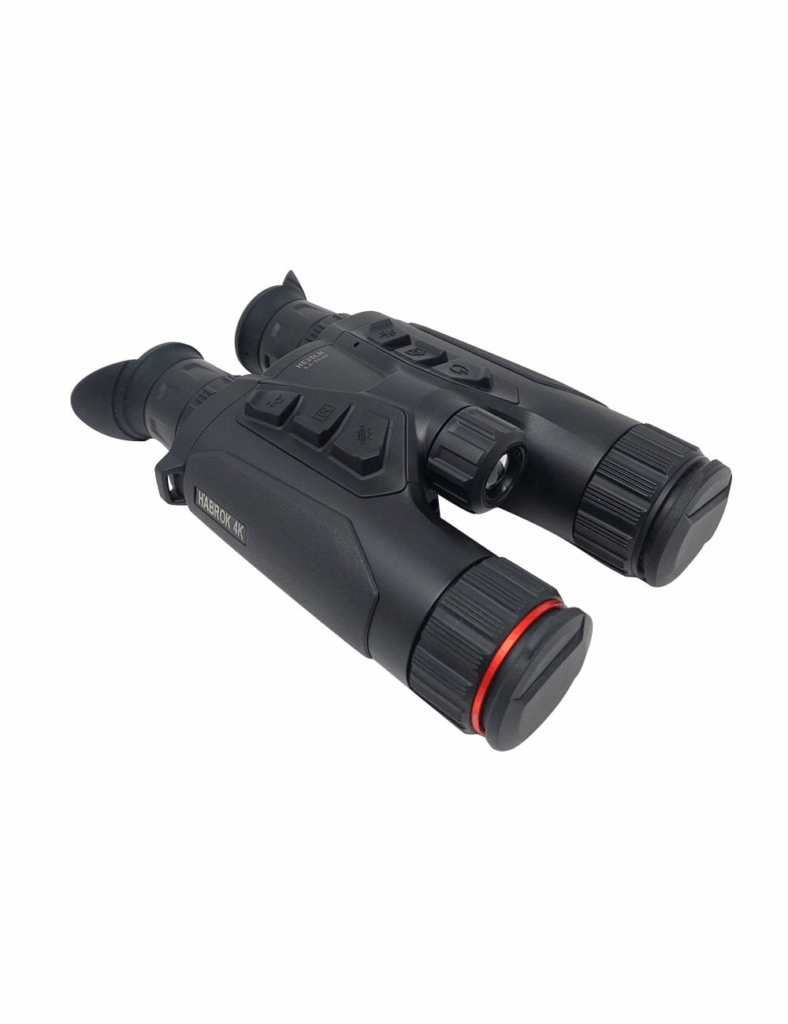 Les jumelles Habrok 4K HE25LN se distinguent par leur design binoculaire moderne avec un boîtier noir mat texturé offrant une excellente prise en main. Les anneaux colorés (rouge sur l’objectif thermique, bleu sur l’optique) permettent une identification rapide des différents modules. Les boutons de contrôle ergonomiques sur le dessus facilitent l’accès aux principales fonctions même dans l’obscurité.
