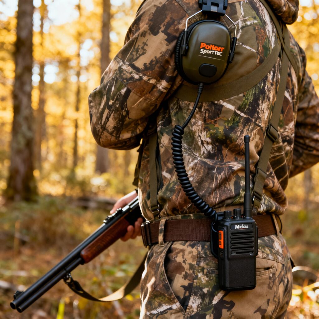 Pour les chasseurs , le système J22 avec un Casque SportTac ou ProTac connecté à une radio PMR446 représente le meilleur compromis qualité-prix. La gamme de câbles TAMT couvre tous les modèles de radios populaires (Midland, Motorola, Kenwood, Baofeng), garantissant une compatibilité optimale.