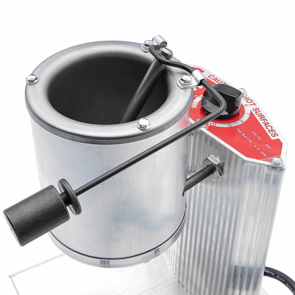 Pour le préchauffage , placez le moule sur le bord du four pendant que le plomb monte en température. Trempez ensuite le coin du moule dans le plomb fondu pendant 30 secondes. Cette technique permet d’atteindre rapidement la température optimale de travail.
