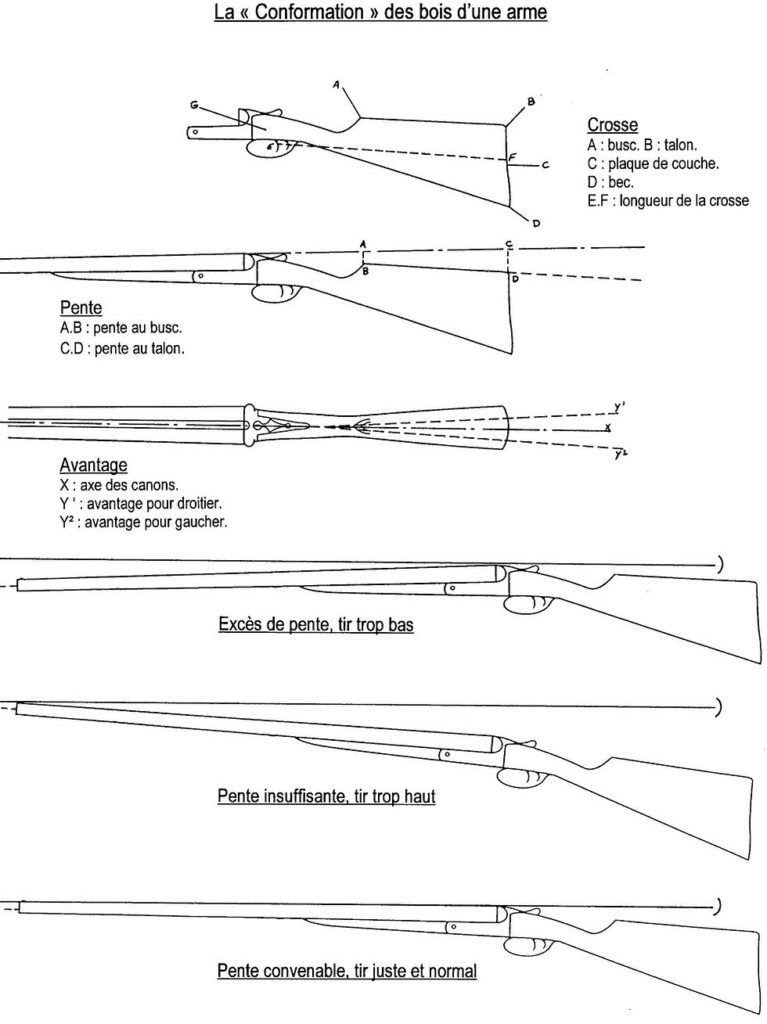 La vérification de l’avantage suit la même méthode que pour la pente : épaulement les yeux fermés, puis contrôle de l’alignement naturel à l’ouverture. Le canon doit être parfaitement dans l’axe de votre ligne de visée, sans que vous ayez à « tourner » le fusil dans vos mains pour chercher l’alignement.