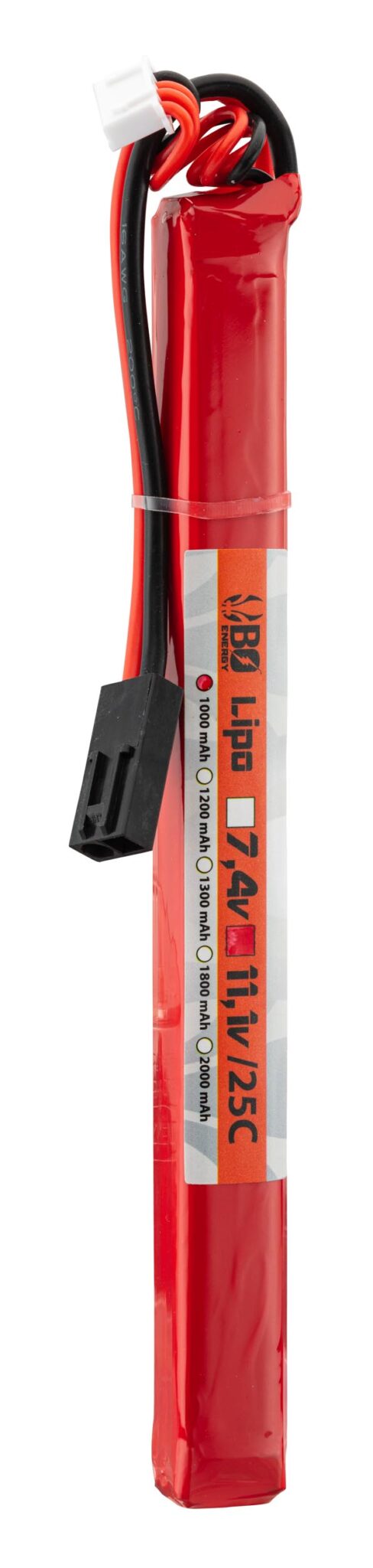 Le 1 stick batterie Lipo 2S 7.4V 1000mAh 25C de BO MANUFACTURE s’impose comme un choix de référence dans l’univers airsoft – batterie & fusibles. Dimensions : 11x17x100mm.