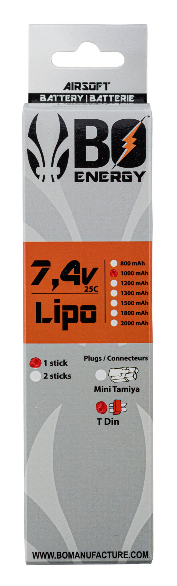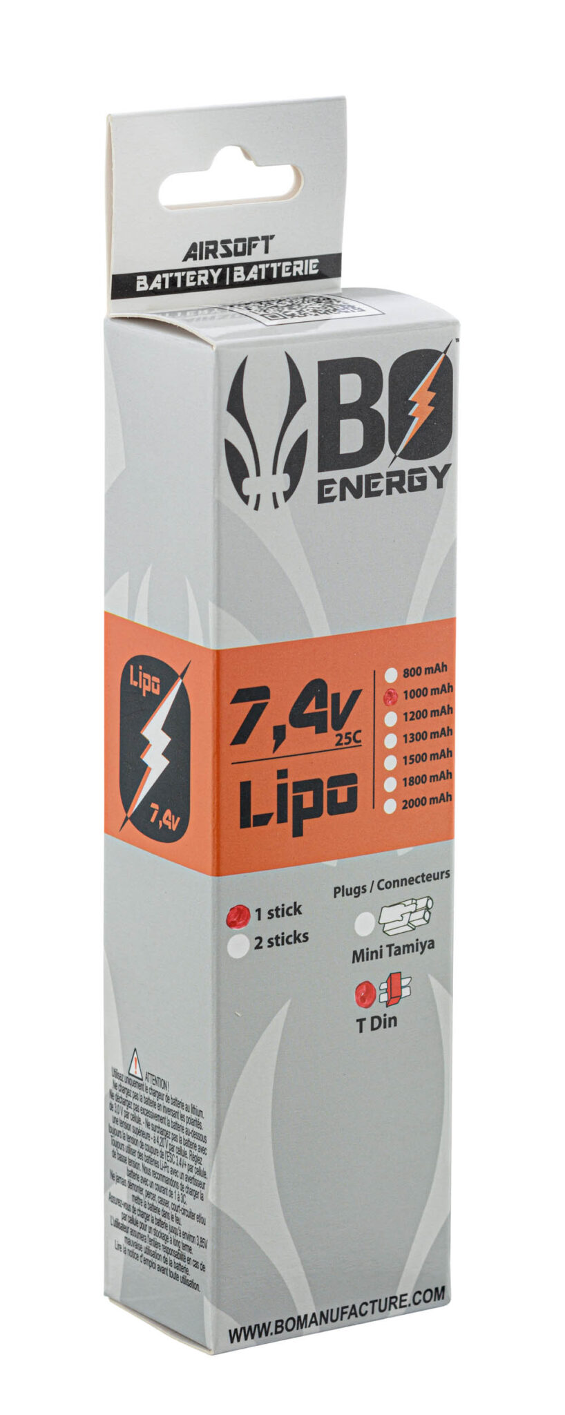 Le 1 stick batterie Lipo 2S 7.4V 1000mAh 25C de BO MANUFACTURE est un produit pensé pour offrir des performances optimales dans le domaine du airsoft – batterie & fusibles.