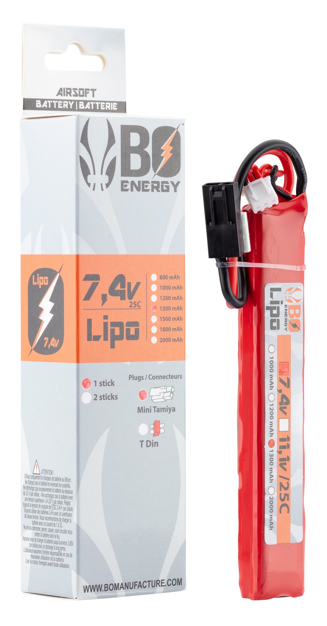Le 1 stick batterie Lipo 2S 7.4V 1300mAh 25C de BO MANUFACTURE est un produit pensé pour offrir des performances optimales dans le domaine du batteries / chargeurs batteries.
