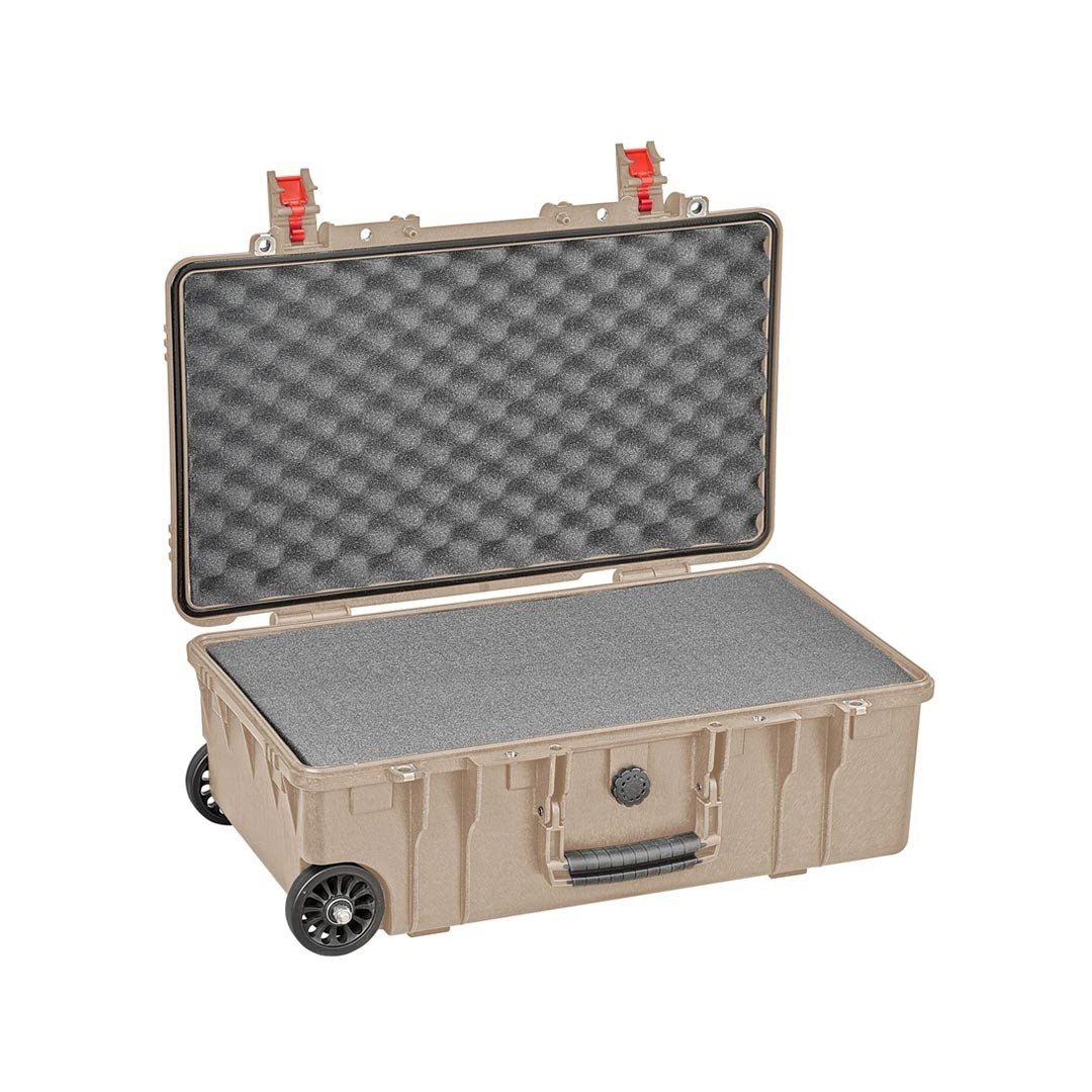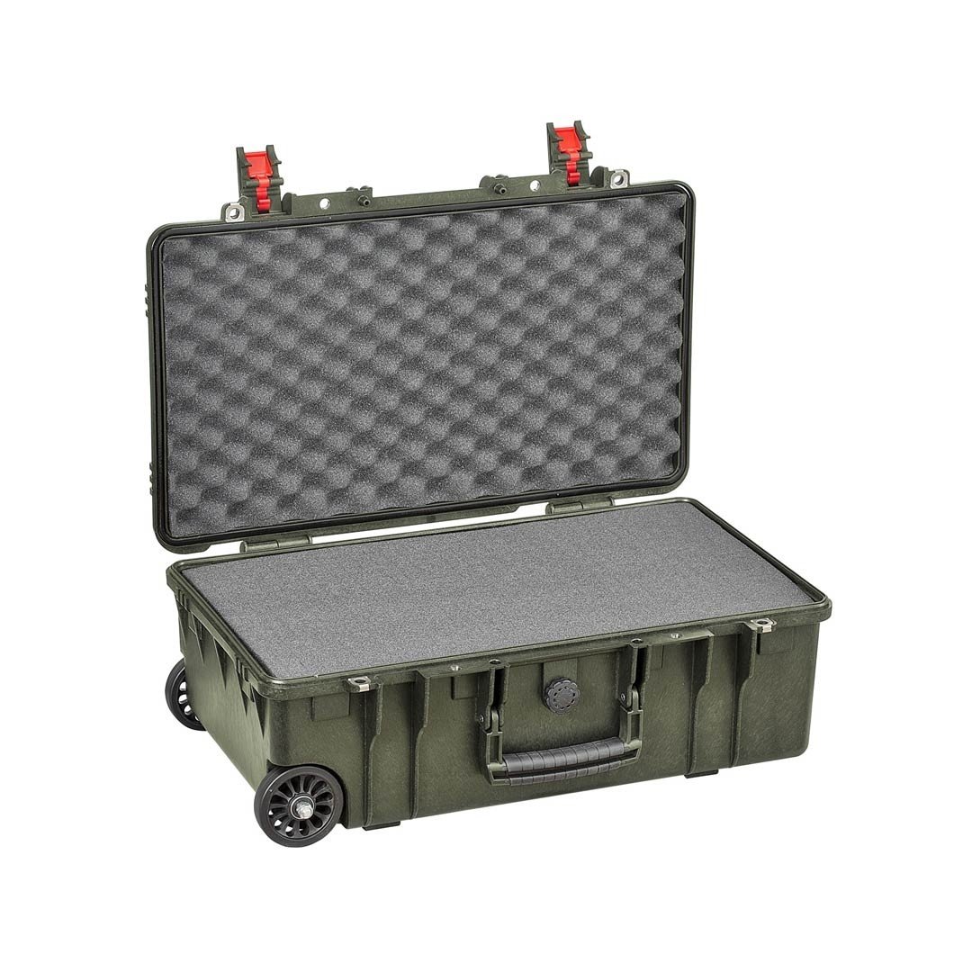 Cette valise à roulette, extrêmement résistante et étanche, permet le rangement et le transport de matériels sensibles avec un haut niveau de protection. Valise hermétique est résistante aux agents chimiques, à l’humidité et à la poussière. Résistante aux températures les plus extrêmes (-33 °C /+90 °C). Elle possède un manche télescopique et des roues autolubrifiantes. Elle est garnie de blocs de mousse prédécoupée. Le façonnage du matériel à protéger s’effectue manuellement par arrachage des bâtonnets de mousse.