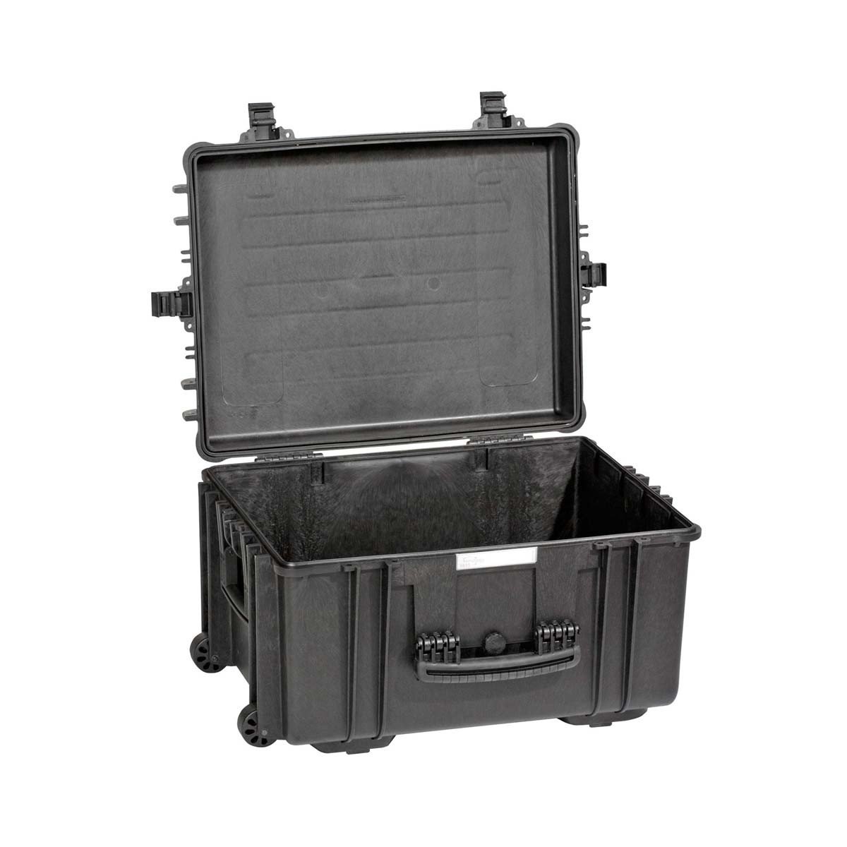 Cette valise à roulettes, extrêmement résistante et étanche, permet le rangement et le transport de matériel fragile. Elle ne possède pas de blocs de mousse prédécoupés.