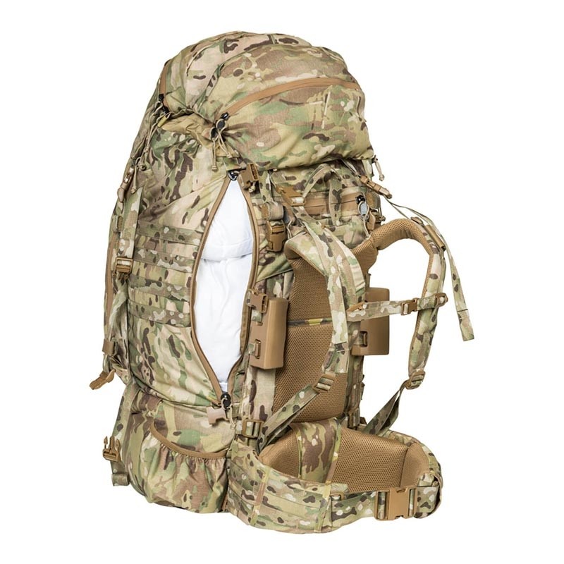Le sac à dos de mission 6500 de 106 litres à chargement par le haut possède un compartiment Speedzip™ pour un sac de couchage, ainsi que le couvercle supérieur Day Pack Lid amovible. Le harnais est adapté au port sur plaques balistiques et le système de tampons BVS permet de stabiliser la charge et de fournir une excellente ventilation du dos. Il est équipé du cadre de portage NICE et du harnais FUTURA qui est totalement réglable pour le port de charge lourde.