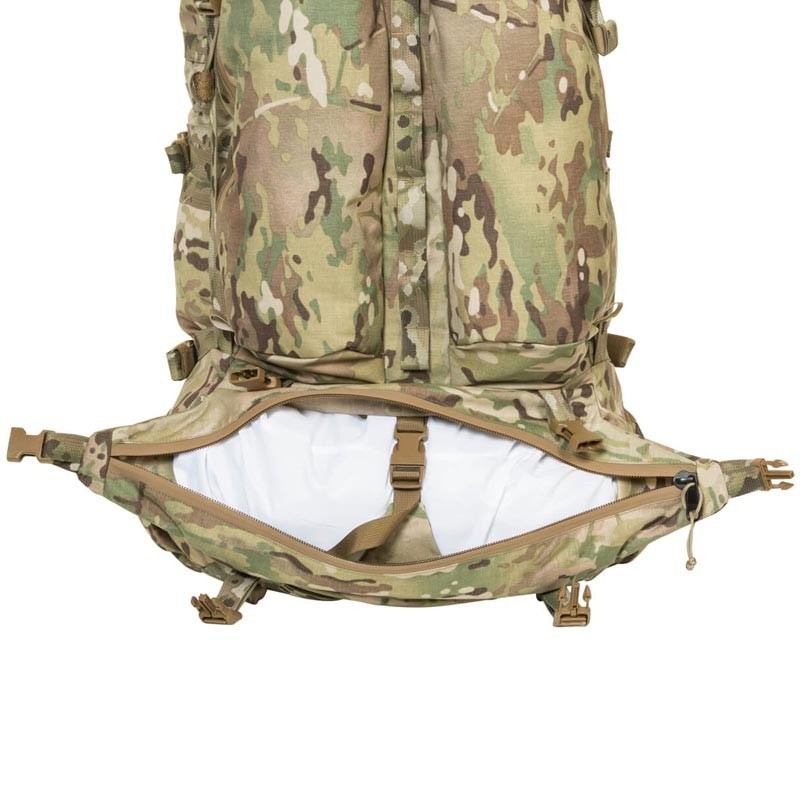 Le sac à dos de mission 6500 de 106 litres à chargement par le haut possède un compartiment Speedzip™ pour un sac de couchage, ainsi que le couvercle supérieur Day Pack Lid amovible. Le harnais est adapté au port sur plaques balistiques et le système
