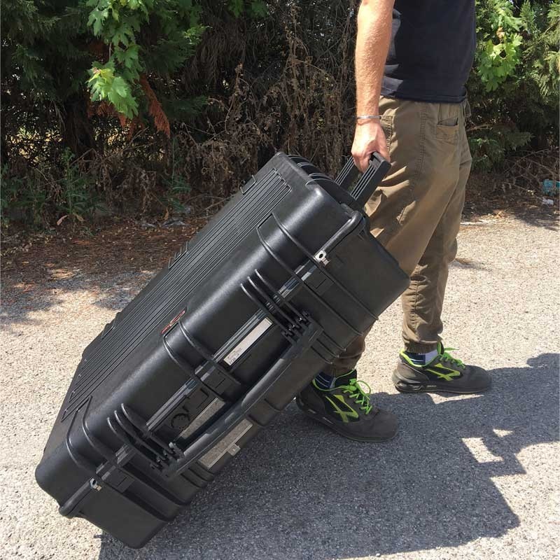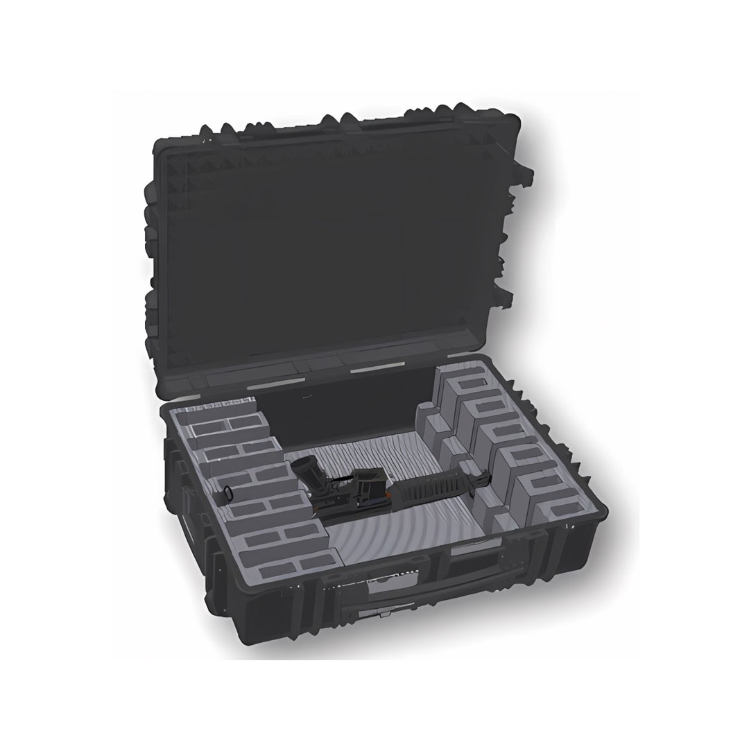 Cette valise à roulettes, extrêmement résistante et étanche, permet le rangement et le transport de 6 armes longues jusqu’à 76 cm. Elle possède des blocs de mousse prédécoupée à cet effet, tous les fusils peuvent être logés en toute sécurité avec des optiques montées.