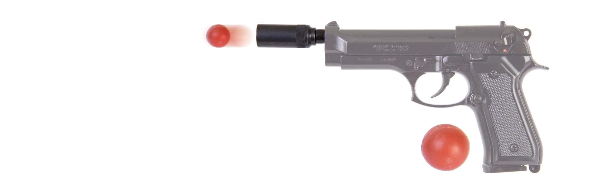 Adaptateur pour pistolets et revolvers à blanc. Livré avec 10 balles en caoutchouc de calibre 18 mm.