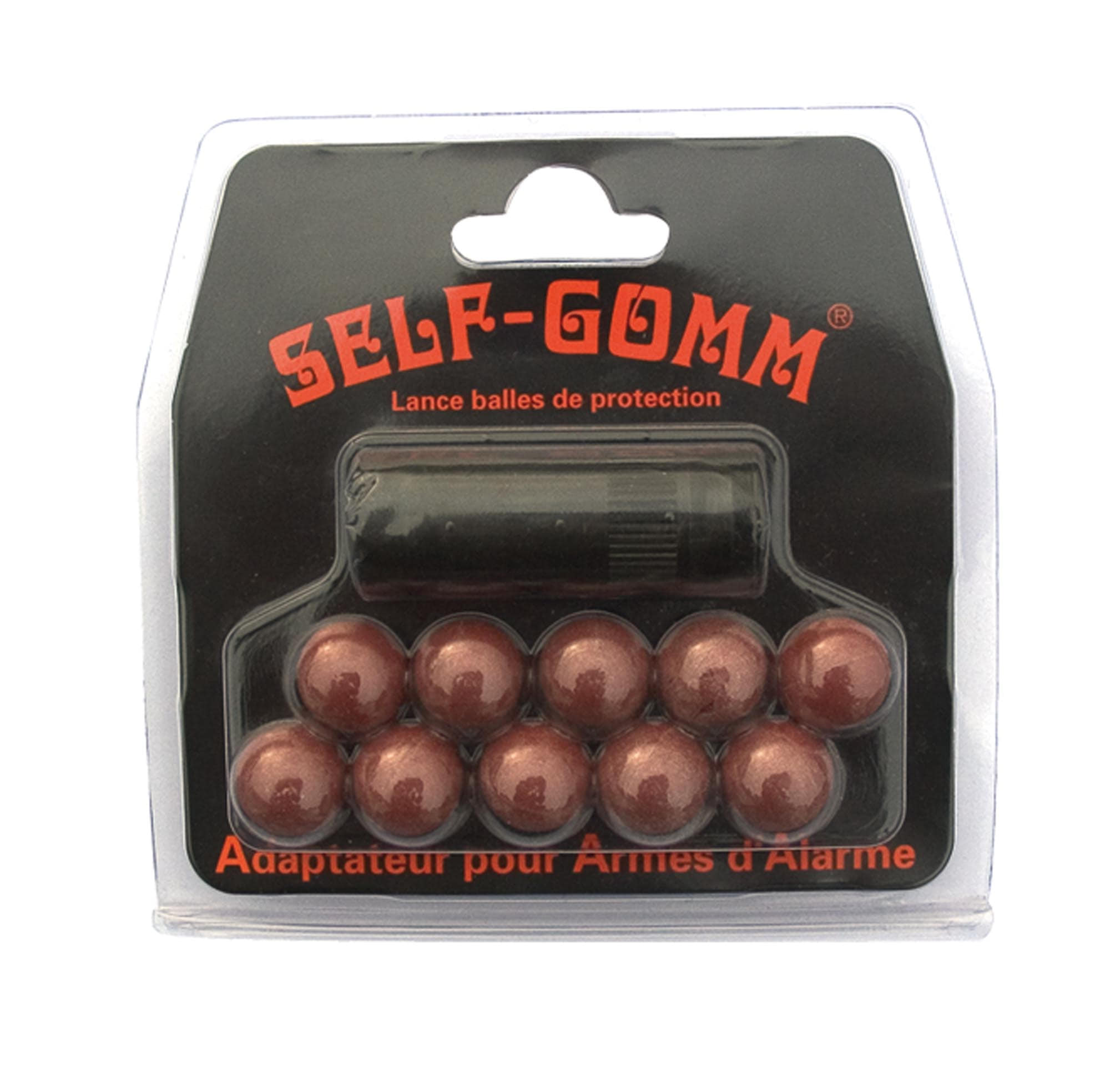 Adaptateur pour armes d’alarme + 10 projectiles Self Gomm calibre 18 mm – Filetage 10 mm x 100