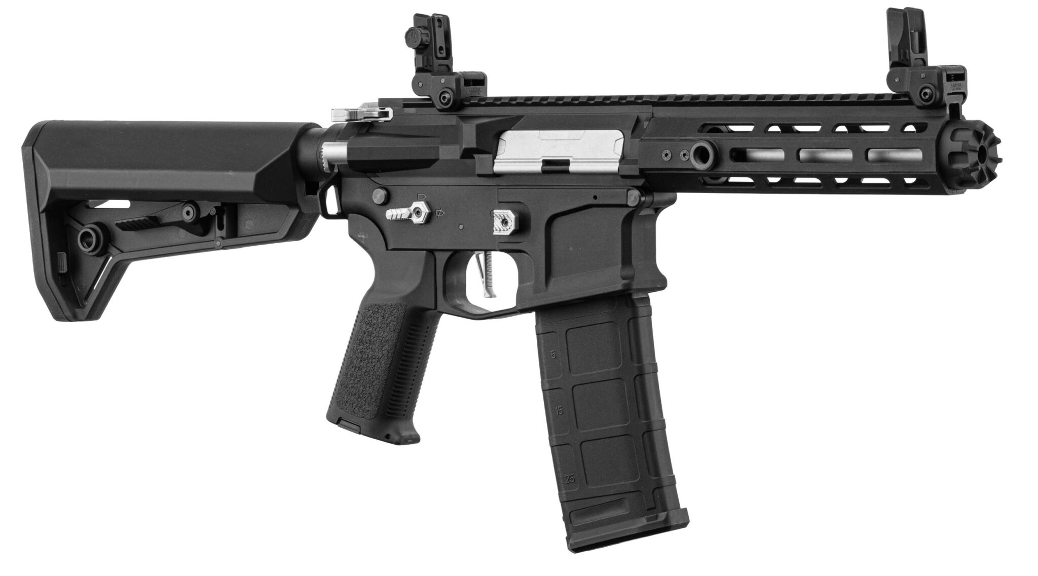 Très remarqué sur les terrains milsim pour son look unique, le Hellion séduit les joueurs qui cherchent à sortir du M4 classique sans sacrifier la compatibilité des pièces internes standard. Il se manœuvre facilement dans les couloirs CQB grâce à son garde-main court de 7 pouces.