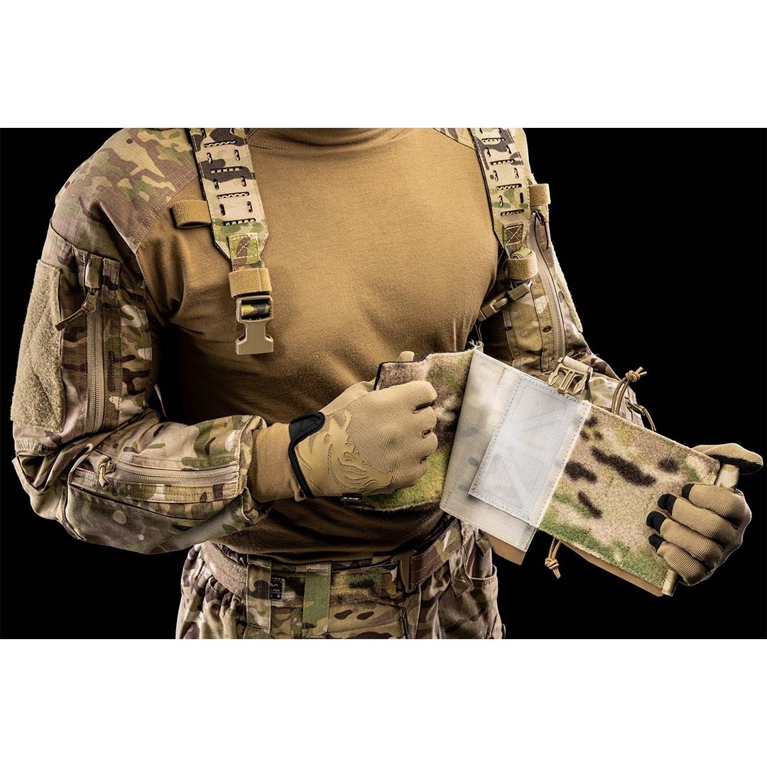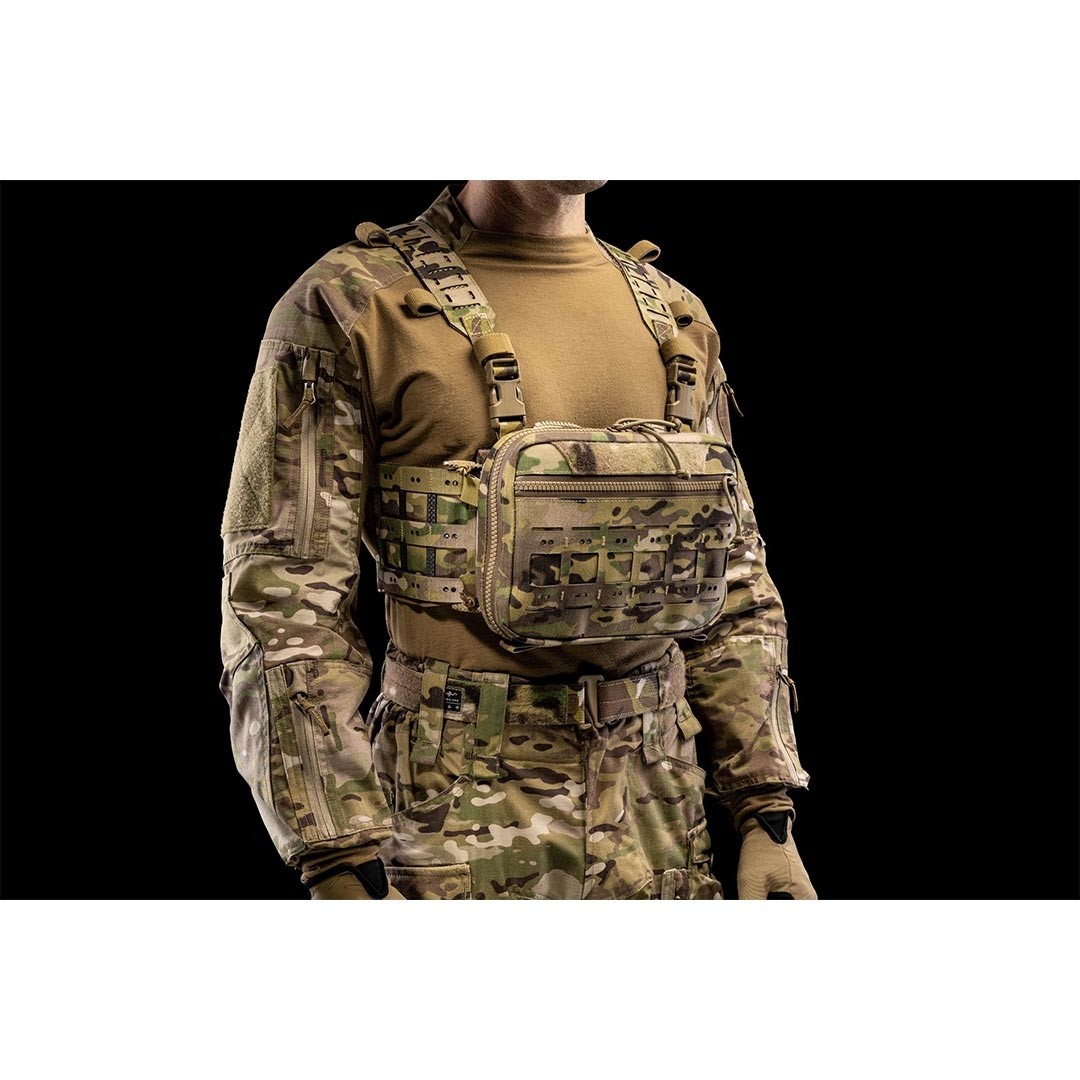 Le système Multi-Dot MOLLE PALS exclusif FROG.PRO® facilite l’ajout de poches ou d’accessoires, tout en permettant la fixation de cordons pour la gestion de câbles, chemlights ou tourniquets. L’intérieur en Velcro® Velour offre une compatibilité complète avec de nombreux inserts modulaires. Le kit comprend 4 cordons élastiques ITW Nexus® GT Tactical, assurant une liaison solide entre le chest rig et les extensions, même sous contrainte. Points forts Ajoute 3 colonnes MOLLE PALS de chaque côté Structure rigide en Tegris® technopolymère ultra-légère Revêtement extérieur en tissu composite LAHYCO® Doublure intérieure en Velcro® Velour pour inserts internes Compatible avec tous les micro chest rigs FROG.PRO Système Multi-Dot MOLLE PALS permettant la fixation d’accessoires supplémentaires 4 cordons ITW Nexus® GT Tactical inclus pour maintien renforcé Résistance à l’humidité, à la chaleur et aux torsions répétées Caractéristiques principales Compatibilité : tous micro chest rigs Capacité : 3 colonnes MOLLE PALS par côté Structure : Tegris® technopolymère Revêtement extérieur : tissu composite LAHYCO® (Cordura® 500D + Hypalon®) Intérieur : Velcro® Velour Système : Multi-Dot MOLLE PALS exclusif FROG.PRO® Poids : 120 g (paire) Couleur : Noir Contenu de la boîte 1 paire d’Extension Side Wings +3 Noire 4 cordons élastiques ITW Nexus® GT Tactical Toggles Matériaux Structure
