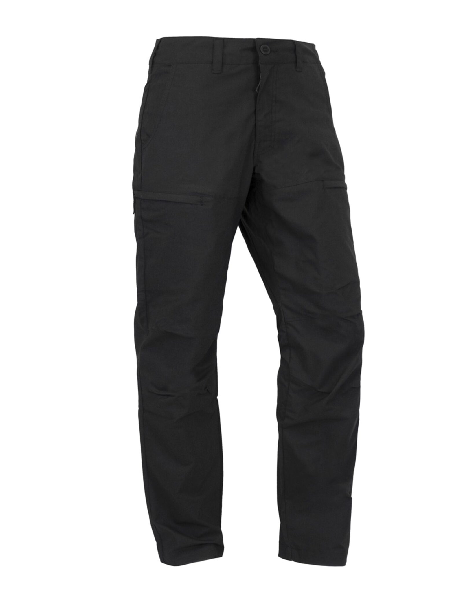 Le tissu 60/40 Polycotton stretch mécanique avec panneaux en biais assure une mobilité complète dans toutes les directions. La configuration de poches multi-usages inclut deux poches cargo frontales zippées horizontalement (capacité 2 chargeurs 5,56 chacune), deux poches discrètes pour smartphone ou radio, et une ceinture Tricot avec double bouton et fermeture zip. La coupe tapered maintient un profil affiné même en grandes tailles.