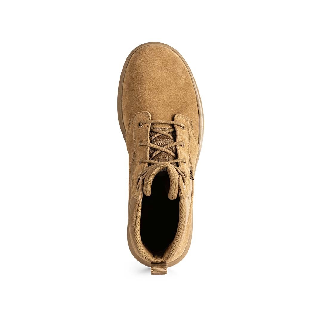 Le confort est au cœur de la conception de cette chaussure : l’amortissement Force Foam® au niveau du talon absorbe les chocs lors des déplacements prolongés, tandis que l’assise plantaire Ortholite® assure un maintien optimal de la voûte plantaire. La languette en maille respirante et résistante à l’abrasion favorise la ventilation, et la semelle intérieure Heat Deflect® dévie la chaleur rayonnante du sol, un avantage décisif en environnement désertique. La semelle extérieure en caoutchouc antidérapante et résistante à l’huile (norme ASTM) offre une adhérence fiable sur toutes les surfaces. Sans PFAS dans sa fabrication.