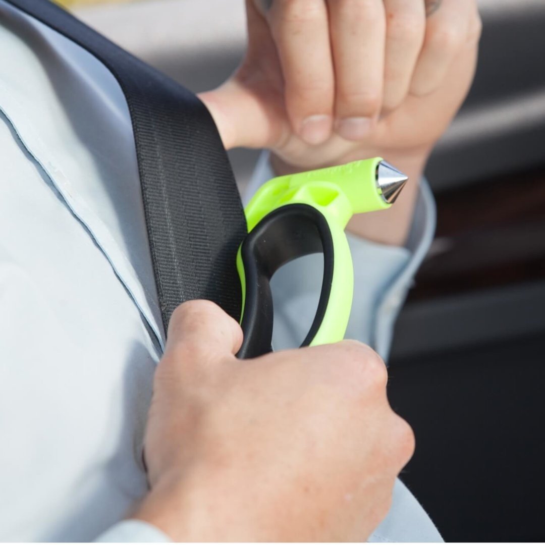 Ce marteau d’urgence innovant et polyvalent Resqhammer™ présente un design élégant et moderne avec une forme unique et un protège doigts. La tête du marteau en acier inoxydable brise facilement les vitres latérales d’une voiture et la lame tranchante coupe rapidement et facilement les ceintures de sécurité bloquées. Facile à installer dans votre voiture grâce à son support de montage, il peut être fixé à différents endroits à l’intérieur de votre véhicule pour être toujours à portée de main « Quand les secondes comptent… ».
