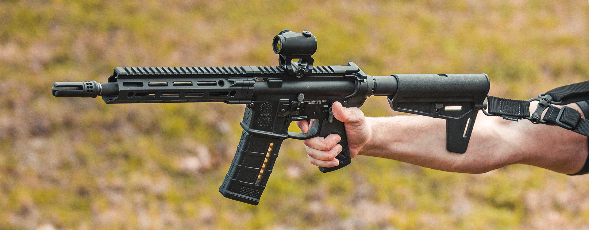 Un arm brace est un stabilisateur d’avant-bras conçu pour les plateformes pistolet, différent réglementairement d’une crosse. Vérifiez la législation en vigueur dans votre pays.