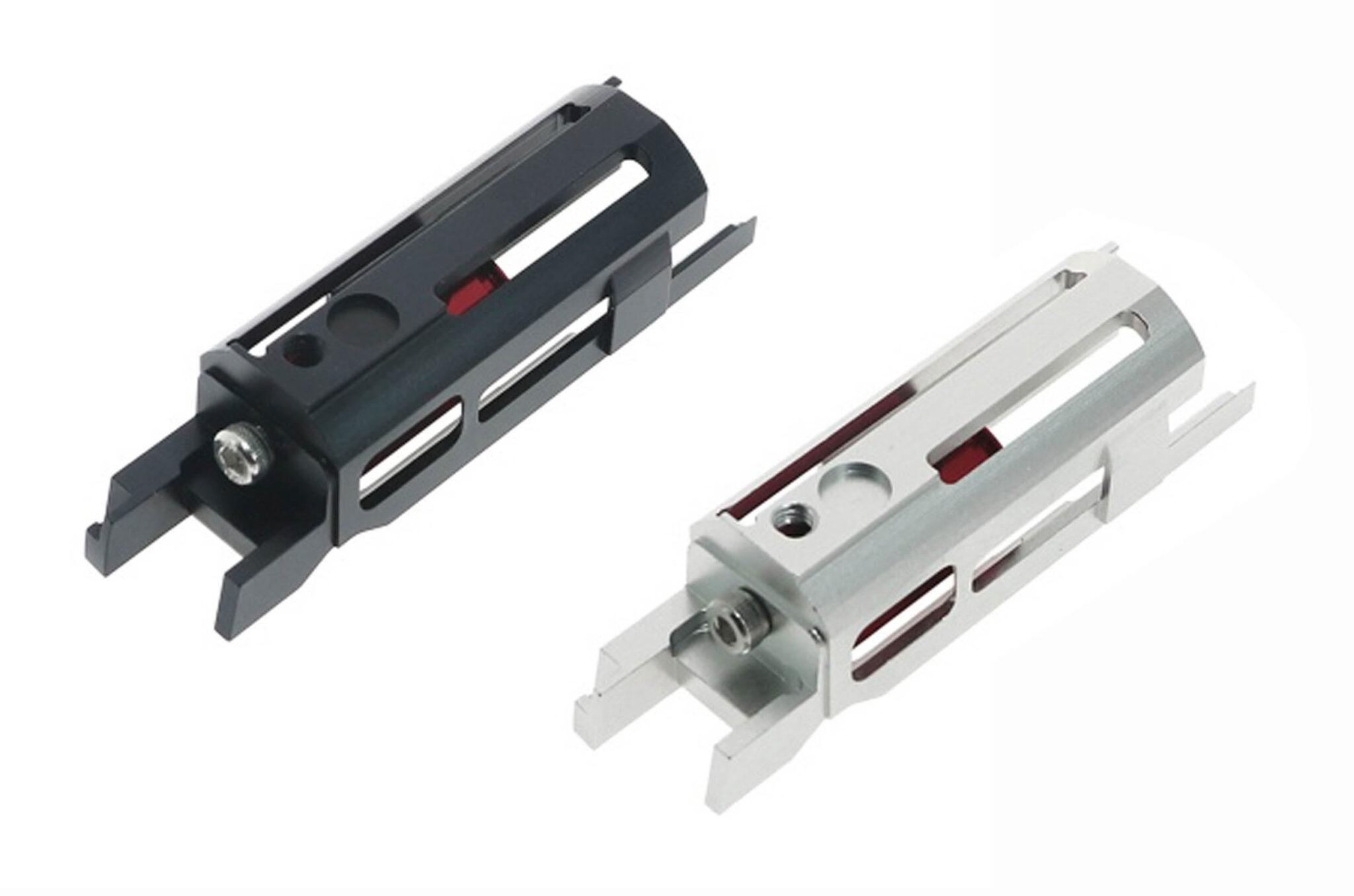 Cette Blow back unit (cage nozzle) est fabriquée en aluminium 6061 CNC. Son design compact et ultra léger permet d'optimiser les performances de la réplique tout en la rendu plus durable et solide !