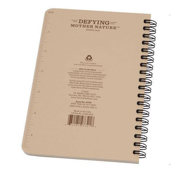 Carnet 11.7 X 17.7Cm, 64 Pages, Spirale Verticale – Tan – Rite In The Rain