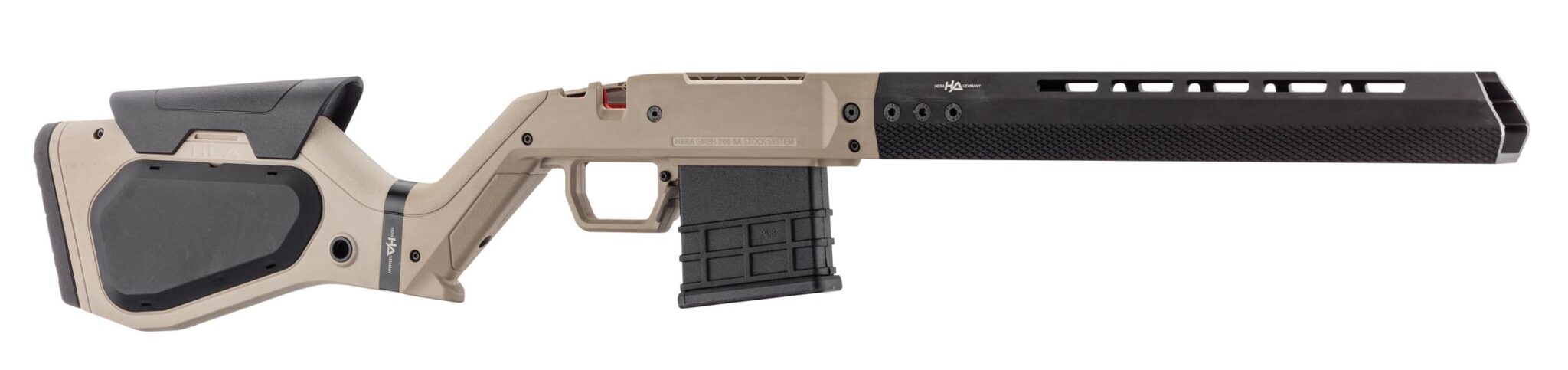 Le Chassis HERA ARMS Remington 700 SA (Short Action) de Heraarms s’impose comme un choix de référence dans l’univers accessoires de tir. Polymère renforcé fibre de verre et fût en aluminium.