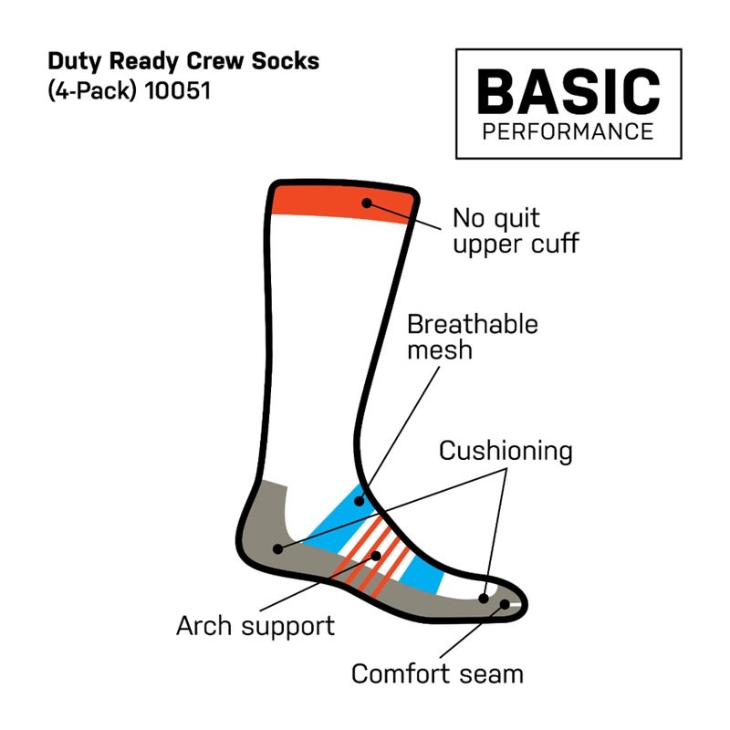 La chaussette Duty Ready Basic Crew de 5.11 Tactical est une chaussette de hauteur moyenne conçue pour les professionnels qui passent de longues heures debout ou en mouvement. En coloris noir, taille S, ce lot de 4 paires représente une dotation complète pour une semaine de service. Elle s’adresse aux agents de sécurité, policiers, militaires et professionnels de terrain qui ont besoin d’une chaussette fiable, discrète et adaptée à un port régulier sous une botte ou une chaussure de service.