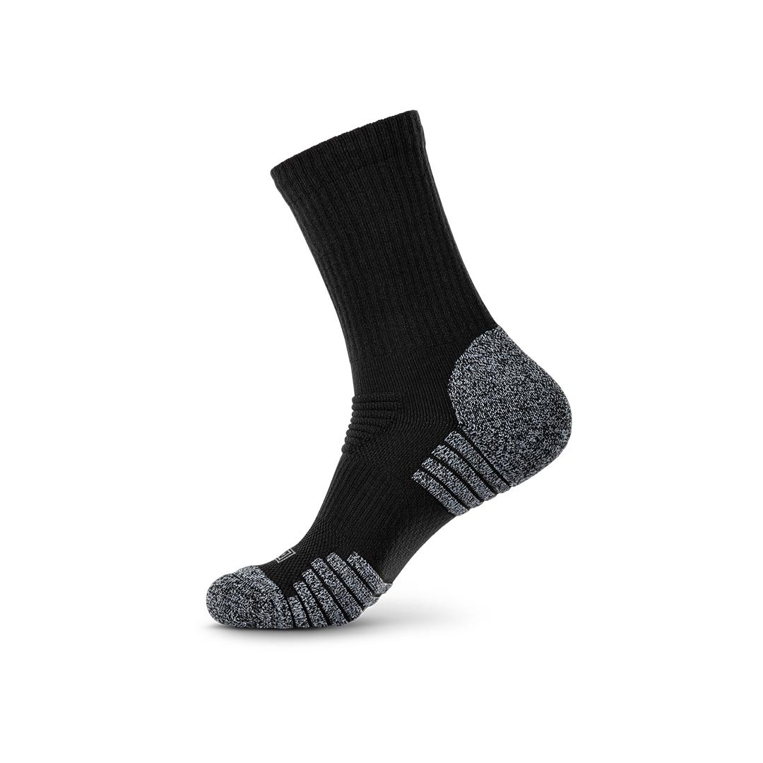 Les chaussettes Duty Ready Ultra Crew de 5.11 Tactical en coloris noir (019) représentent le niveau de performance le plus élevé de la gamme Duty Ready. Disponibles en lot de 2 paires, elles s’adressent aux professionnels exigeants qui recherchent un maximum de confort lors de longues journées en service actif : forces de l’ordre, personnel militaire, agents de sécurité et utilisateurs soumis à des contraintes physiques importantes. La hauteur de tige moyenne (Crew) s’adapte aux chaussures de service, aux boots et aux chaussures d’intervention à tige basse ou moyenne.