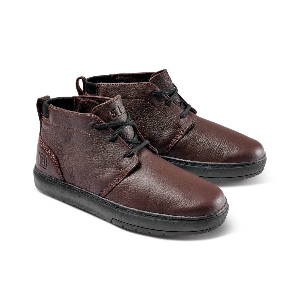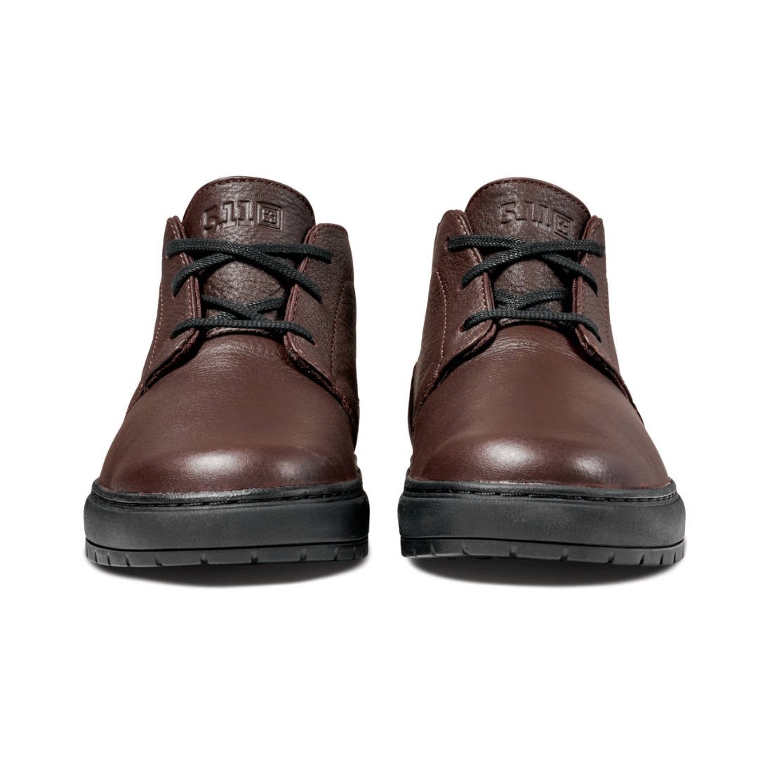 Sa tige en cuir pleine fleur avec traitement déperlant DWR C0 apporte un rendu raffiné tout en garantissant une excellente résistance à l’usure. La construction dite « inside-out » renforcée optimise la durabilité globale pour un usage intensif et prolongé. La semelle extérieure en caoutchouc Vibram®, développée en collaboration avec 5.11®, offre une adhérence fiable sur différents types de surfaces. La semelle intérieure amovible en mousse Ortholite® procure un amorti confortable qui réduit la fatigue lors des longues stations debout. Une chaussure prête à suivre votre rythme, du bureau au terrain.