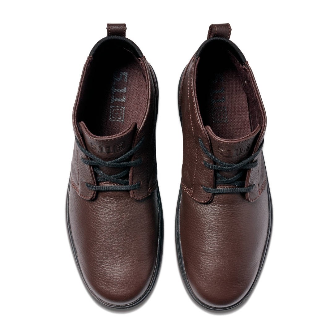 Sa tige en cuir pleine fleur avec traitement déperlant DWR C0 apporte un rendu raffiné tout en garantissant une excellente résistance à l’usure. La construction dite « inside-out » renforcée optimise la durabilité globale pour un usage intensif et prolongé. La semelle extérieure en caoutchouc Vibram®, développée en collaboration avec 5.11®, offre une adhérence fiable sur différents types de surfaces. La semelle intérieure amovible en mousse Ortholite® procure un amorti confortable qui réduit la fatigue lors des longues stations debout. Une chaussure prête à suivre votre rythme, du bureau au terrain.
