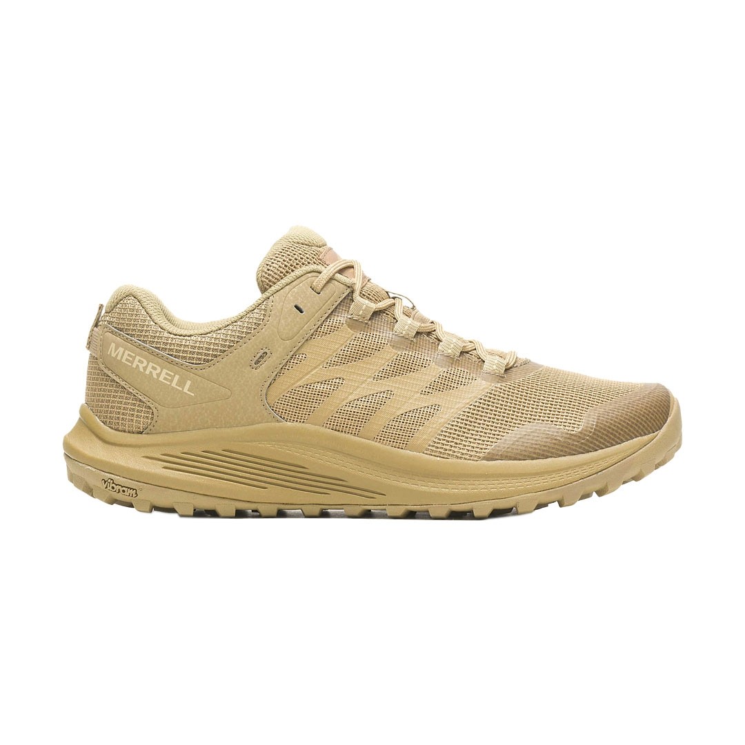 La chaussure Merrell Nova 3 Tactical coloris Coyote en pointure 41.5 est une chaussure d’intervention légère qui associe le confort d’une basket à la résistance d’une chaussure de randonnée. Conçue pour les professionnels travaillant en extérieur, elle intègre des composants fabriqués à partir de matériaux recyclés, dont la doublure en maille et les sangles de lacets.