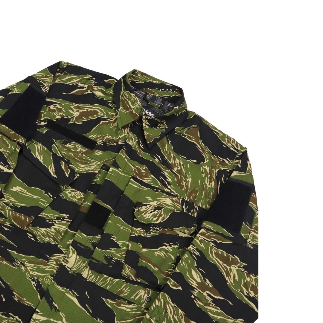 La Chemise combat A110 All Climate Tiger Stripe Arktis Elite de la marque Arktis est une chemise de combat conçue spécifiquement pour les environnements à climat chaud et humide. Issue de la gamme professionnelle Arktis, elle réunit légèreté, fiabilité et fonctionnalité pour répondre aux exigences des opérations en jungle, dans le désert ou dans toute région tropicale. Sa conception de type guérilla privilégie la liberté de mouvement et la gestion thermique, deux facteurs essentiels pour maintenir l’efficacité opérationnelle dans des conditions climatiques extrêmes.