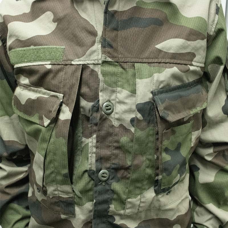 | Composition | 50/50 Poly/Coton MiniRip stop (200 gr/m²) Coloris : French désert Daguet (FDS) * Les photos secondaires en camouflage Centre-Europe sont non contractuelles |