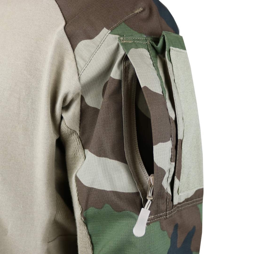 * Modèle manches polycoton 50/50 La chemise de combat UBAS (Under Body Armour Shirt) vous permet d’évacuer la transpiration lorsqu’elle est portée sous un gilet de protection balistique ou un gilet de combat. Confortable et respirante, elle aide à supporter les variations de température grâce à un torse en tissu coton extensible et des aisselles aérées. Les épaules possèdent des protections souples et amovibles pour plus de confort sous la charge. Les manches sont en tissu minirip stop qui est déjà très solide, les coudes sont aussi renforcés pour une meilleure résistance à l’abrasion. Présence de 2 poches zippées à soufflet positionnées de façon ergonomique sur chaque bras qui permettent l’emport sécurisé d’accessoires avec un accès rapide et facile.