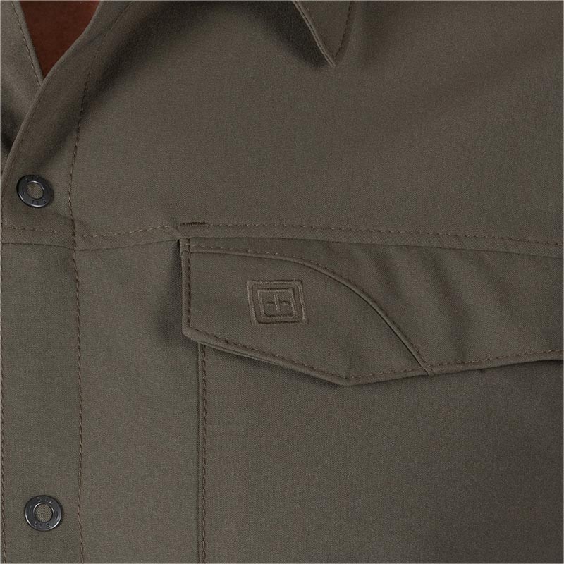 Son tissu 100% polyester extensible et hydrofuge de 132 g/m² évacue l’humidité efficacement et sèche rapidement. La fente Rapidraw™ permet d’accéder rapidement à un T-shirt avec holster ou holster d’épaule, faisant de cette chemise un choix idéal pour les porteurs d’armes dissimulées.