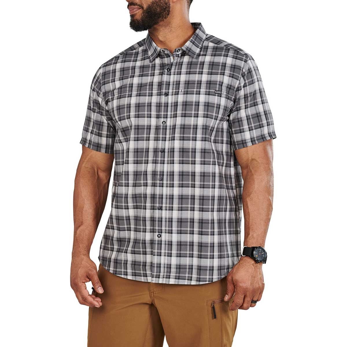 La Chemisette Wyatt Plaid est identique à la Wyatt en termes de fonctionnalités (RAPIDraw™, poches, matière) mais se distingue par son motif à carreaux, apportant une touche de style supplémentaire pour un usage casual décontracté.