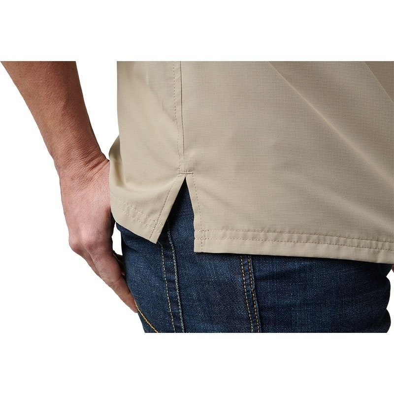 La poche à glissière sur la poitrine gauche permet de sécuriser téléphone, portefeuille ou documents importants en toute sécurité. Les fentes d’aération sur les coutures latérales améliorent la circulation d’air, maintenant le porteur au frais même lorsque les températures sont élevées. L’empiècement arrière double épaisseur renforce les zones de friction, et la patte de boutonnage centrale avec boutons à logo 5.11 complète une finition soignée digne d’un équipement tactique de qualité.