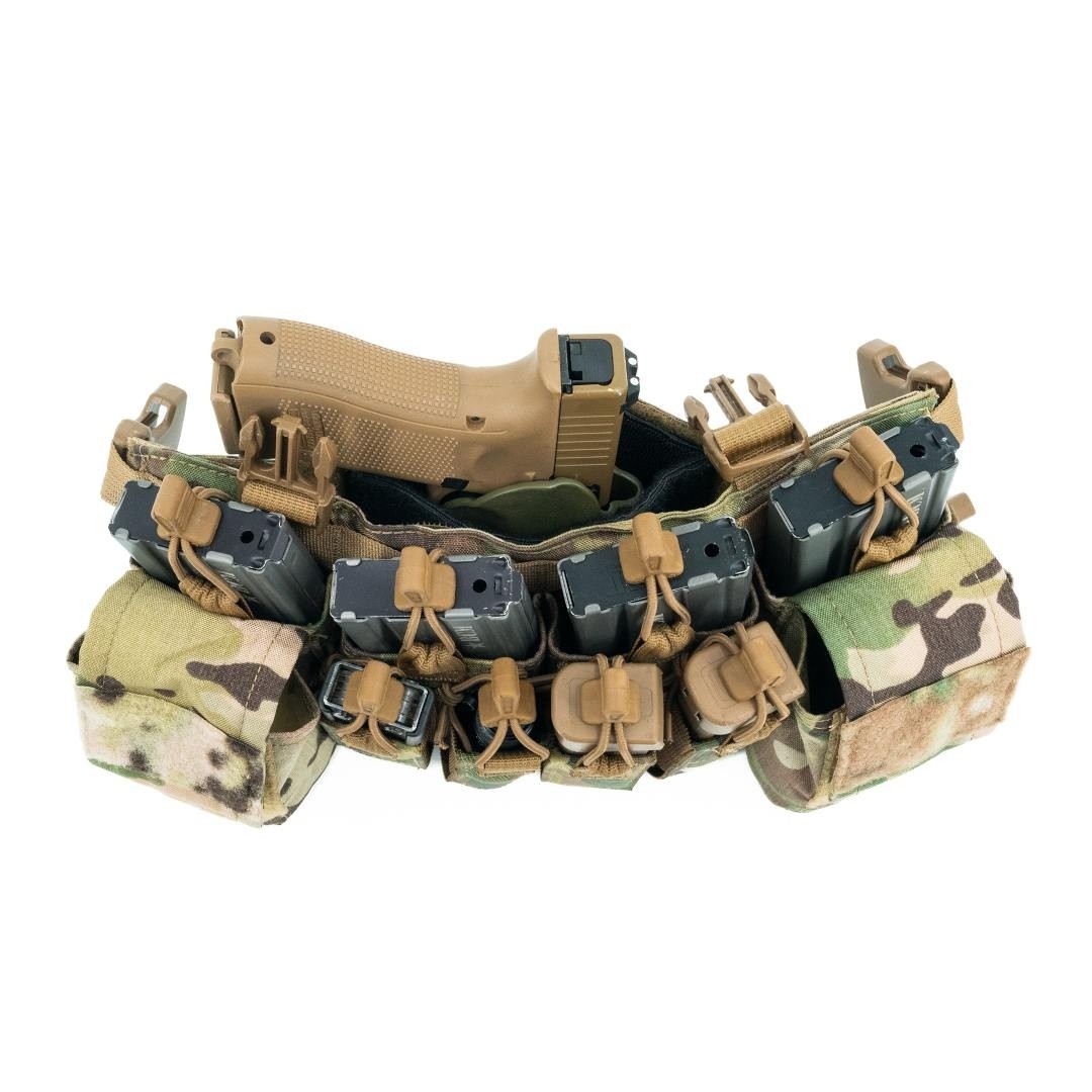 Lorsqu’il est porté sur un porte-plaques dotée d’un système de fixation rapide, l’équipement de poitrine peut être attaché ou rangé en quelques secondes. Cela donne à l’utilisateur final la possibilité de passer d’une tenue discrète à une tenue haute visibilité ou vice versa. Les quatre poches à chargeurs intégrées ont été dimensionnées pour accueillir des chargeurs de 5,56×45, 5,45×39 et 7,62×35.