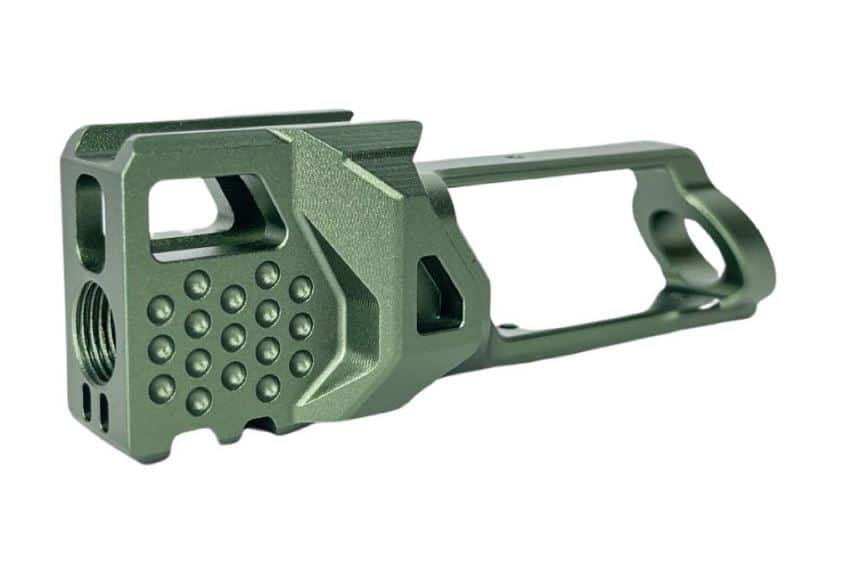 CTM : Marque Taïwanaise innovante. Adoptez le compensateur CNC 6061 en ARMY GREEN, compatible tracer, exclusif pour le FUKU-2 LONGUE.