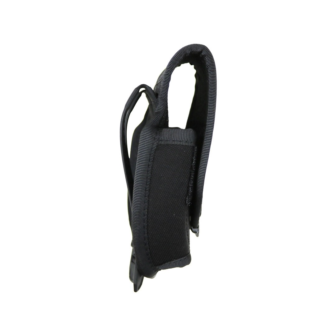 polymère, permettant une fixation fiable sur ceinture de service ou sur plateforme MOLLE. Léger, robuste et discret, il répond parfaitement aux besoins des forces de l’ordre et des professionnels de la sécurité. Rabat de protection en Cordura avec bouton-pression sécurisé Compatible ceinture de service et fixation MOLLE grâce aux passants R.M.S.