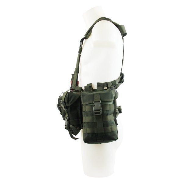 Cet équipement complet vise à combiner polyvalence et modularité. Ce gilet de combat s’articule autour d’un brelage Yoke léger qui permet le port à la façon d’une veste ouverte et d’un lot de poches. Il se décline en différentes versions de port que peuvent imposer le milieu ou la mission. Ce kit comprend : 1 brelage Yoke (W981) 2 platines de support (V980) 1 poche utilitaire medium (W919) 6 poches internes avec des élastiques de maintien pour 6 chargeurs FA (WR28) 1 poche fourre-tout (W923) 1 poche fumigène (W903) 1 poche double grenade (W901) Poids à vide : 1.2 kg