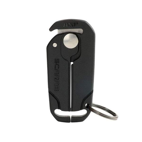 Fabriqué en polymère robuste avec une lame en acier inoxydable double tranchant, le Scarab utilise un effet de levier composé pour sectionner les entraves en un seul geste sûr et précis. Le mécanisme de verrouillage en position fermée garantit une sécurité maximale lors du transport. La garde de sécurité protège l’agent et le sujet durant l’utilisation. Dimensions : 7,6 cm × 3,5 cm × 0,6 cm. Poids : environ 170 g. Un anneau fendu est inclus pour la fixation.