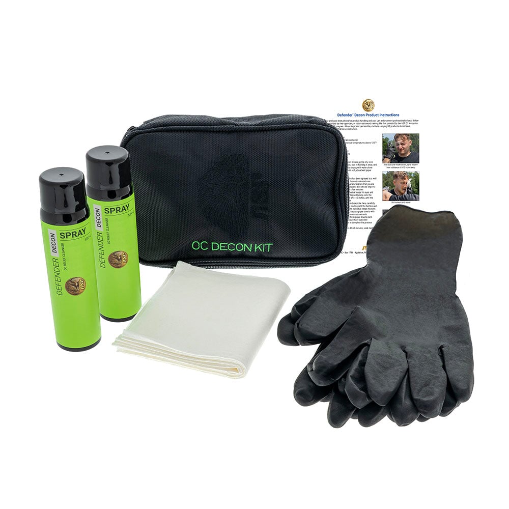Le kit contient deux canisters Defender Decon MK-4 (89 ml chacun), des gants en nitrile, des serviettes en papier doux et une carte de procédure plastifiée, le tout logé dans une trousse zipper compacte et durable. La carte de procédure guide l’opérateur pas à pas pour une décontamination optimale. Compatible avec toutes les formulations OC, ce kit est recommandé dans tout véhicule de patrouille, sac d’intervention et centre de formation.