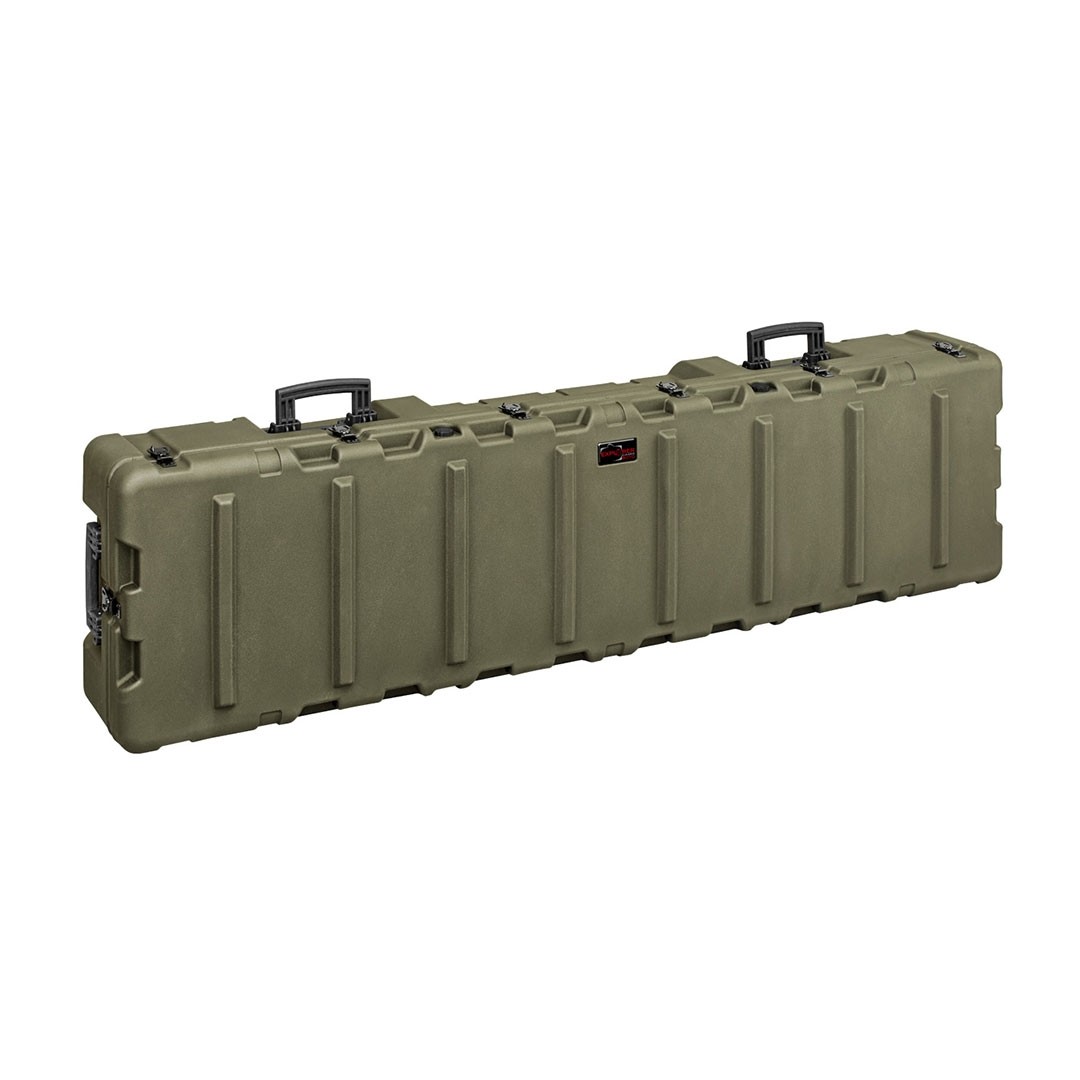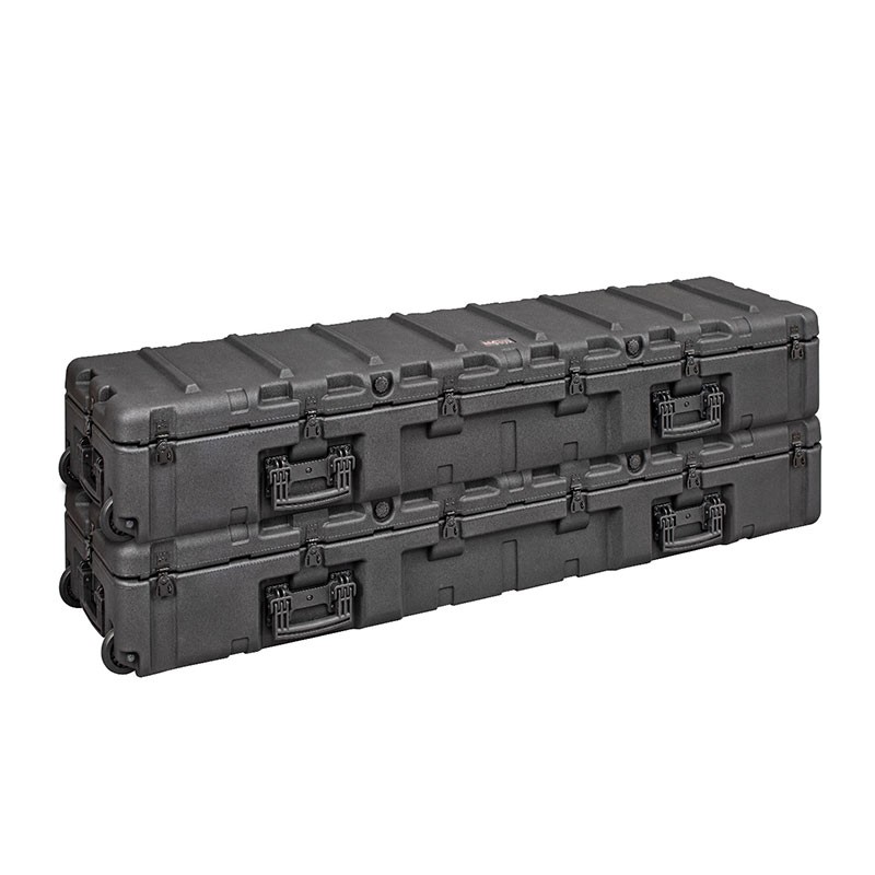 Valise rigide très solide en polyéthylène haute densité réalisée par rotomoulage. Elle possède un joint en PU, un couvercle à charnière avec des supports en acier et 6 poignées pliantes encastrées pour un transport facilité, y compris en cas de valise pleinement chargée.