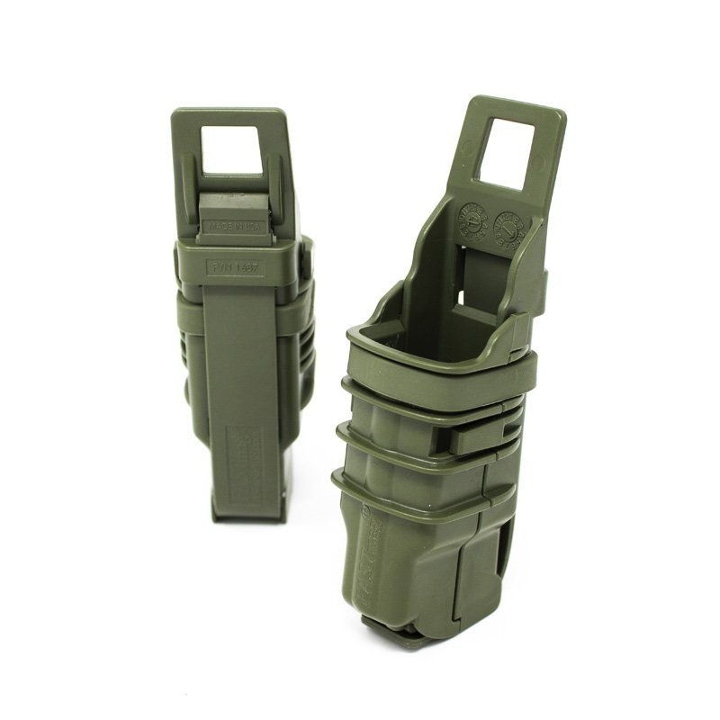 Il peut se monter sur un gilet ou un ceinturon équipé de passant MOLLE aussi bien vers le haut que vers le bas. Caractéristiques: Fabrication solide en polymère avec des propriétés anti-fragmentation Chargeur accessible immédiatement, pas de rabat à enlever Rétention pour le maintien du chargeur Utilisable à l’endroit ou à l’envers Compatible avec la plupart des chargeurs 9mm, .40, .45 y compris 1911 Se fixe sur des passants molles Superposable sur les autres modèles FastMag™ 5.56 et 7.62 Dimensions: 13.5 x 3.8 x 4 cm Poids: 50 g Traitement GhilieTEX™ pour réduire la signature infrarouge (sauf le noir) Résiste au soleil et à l’eau Vendu à l’unité