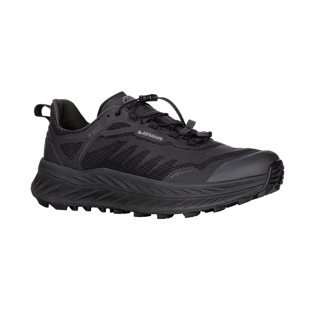 La Chaussure running FORTUX GTX noir Lowa Professionel est conçue pour un usage outdoor exigeant, alliant robustesse, confort et praticité pour les randonneurs, professionnels et utilisateurs intensifs.