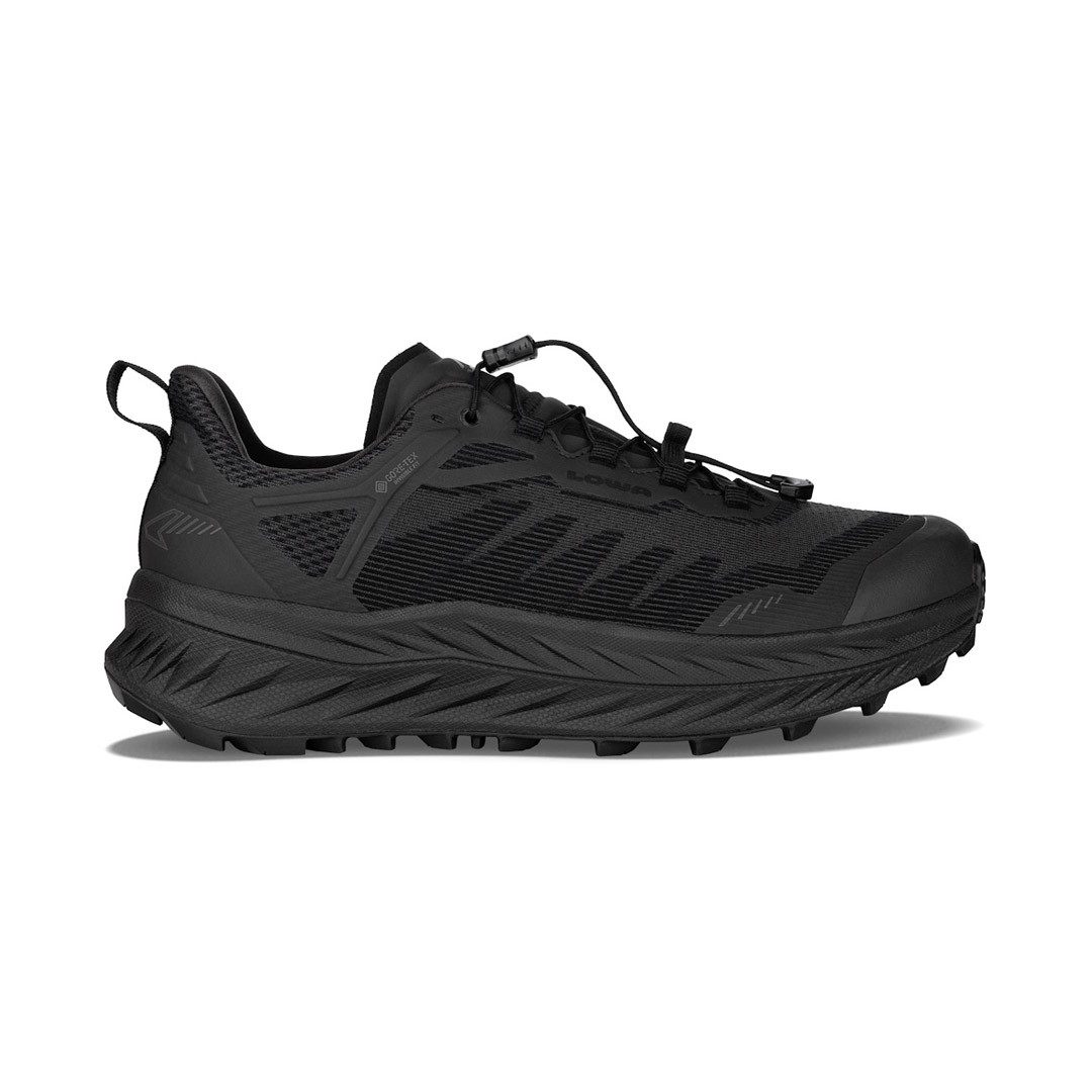 La Chaussure running FORTUX GTX noir Lowa Professionel est conçue pour un usage outdoor exigeant, alliant robustesse, confort et praticité pour les randonneurs, professionnels et utilisateurs intensifs.