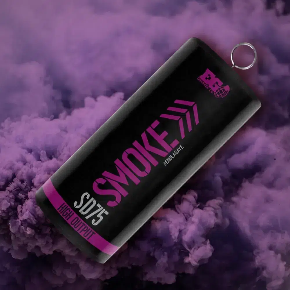 La grenade fumigène Enola Gaye SD75 est conçue pour offrir un excellent compromis entre compacité et intensité de diffusion. Grâce à son format réduit, elle se glisse facilement dans une poche ou une poche tactique, tout en générant un volume dense de fumée colorée pendant environ 90 secondes.