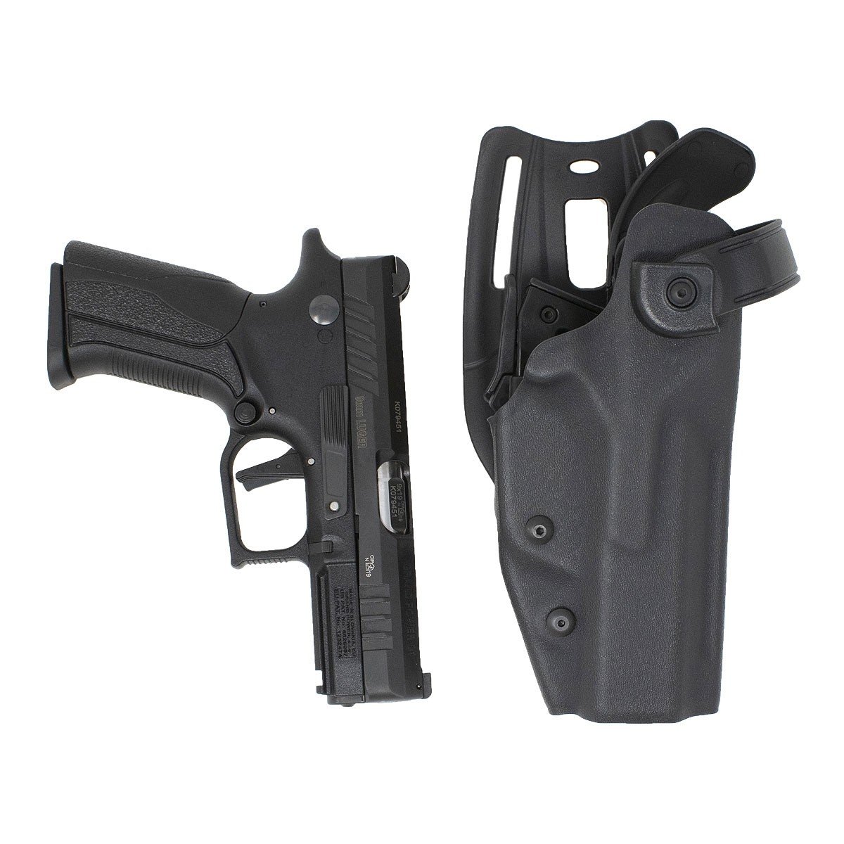 Un étui de transport en polyform (Kydex) de niveau 5 pour pistolet Q1 et Q100 de Grand Power. Un appui naturel du pouce libère automatiquement les sécurités pour extraire l’arme de l’étui. L’arme est protégée contre l’extraction d’une tierce personne.