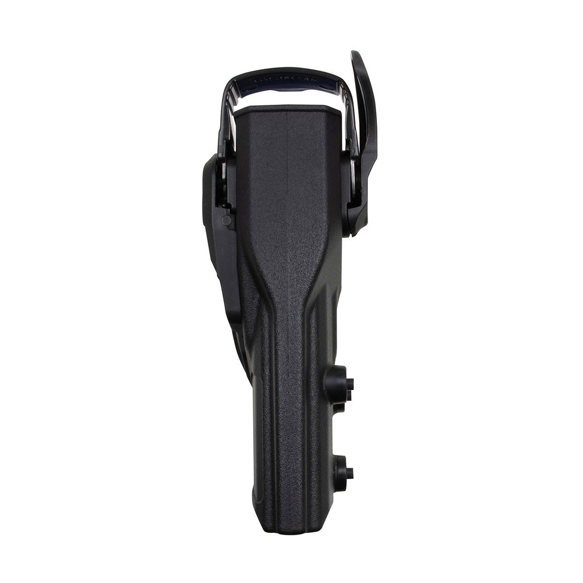 Un étui de transport en polymère injecté avec un niveau de rétention 3 pour le pistolet H&K SFP9. La libération des systèmes de sécurité se fait naturellement par la position de la main sur la poignée pistolet avec l’index qui vient au contact de la pédale externe en exerçant une pression. L’action du doigt fait basculer automatiquement l’étrier supérieur vers l’avant et efface le bouton interne de pontet.