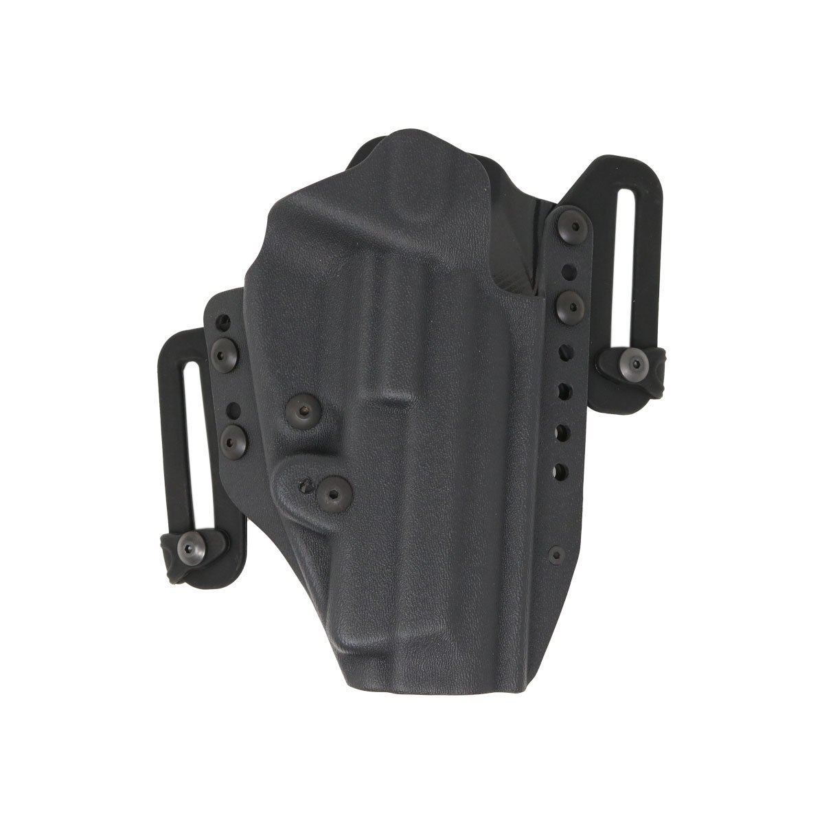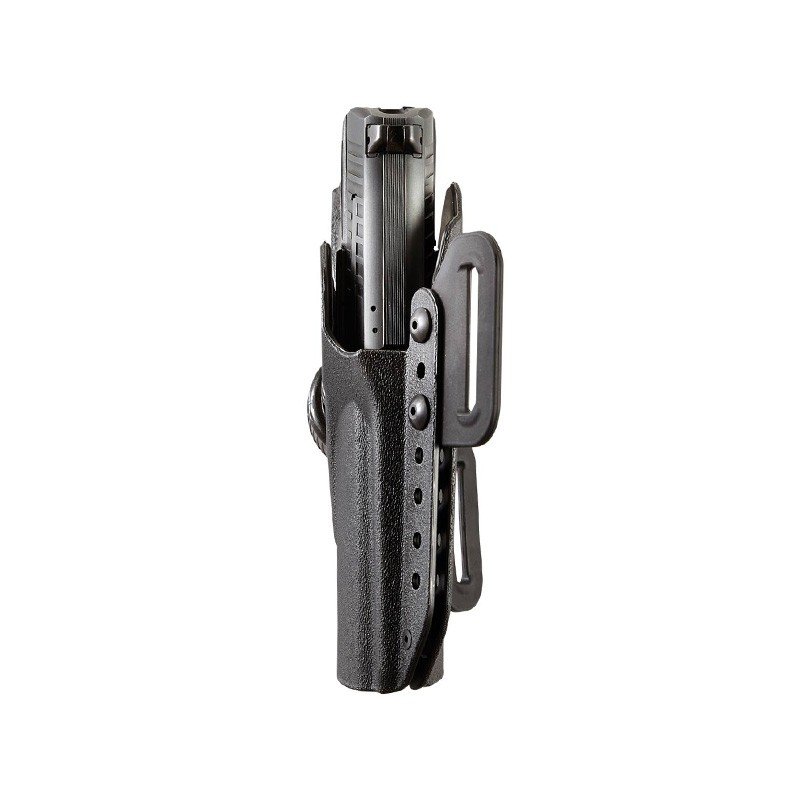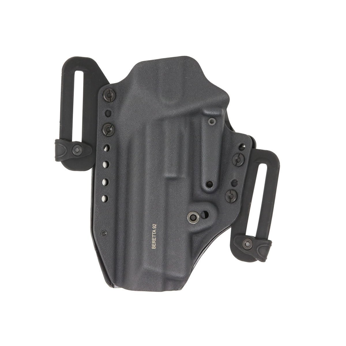 Une vis avec un silent bloc (STR SYSTEM) vient resserrer sur la glissière de l’arme, les 2 parois de l’holster, pour un mouvement d’extraction et de rengainage en douceur. La rigidité du corps de l’étui et la forme adaptée à l’arme permettent un rengainage facile et sûr Caractéristiques Holster port discret Port à la ceinture MMS, Multi-position Multiple Holster system 2 niveaux de rétentions Rétention par moulage de l’étui spécifique à l’arme Système de réglage DROP RETENTION agissant sur le pontet de l’arme Système STR pour gérer la force de retenue de l’arme (vis de serrage jouant sur les parois de l’étui) Livré avec les passants de ceinture Rubber-Tech RAD-6500-0096 Compatible avec de nombreux passants de ceinture (RAD-6500-0096, RAD-6500-0166, RAD-6500-0107, RAD-6500-0176) Disponible en droitier ou gaucher Clé 6 pans fournie Coloris : noir (059) Comptabilité Beretta 92F * Les photos secondaires avec de l’armement sont non contractuelles